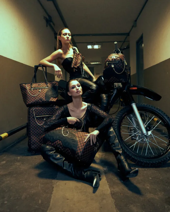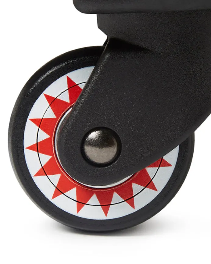 Removeable gold lock with embossed shark mouth with locking key attached to chain Lock is a design detail not for purposes of locking the bag EXTERIOR:100 % Polyvinyl Chloride Shell – AKA 100%Faux Leather H: 19.5” x W: 14.5“x D: 7” YKK® Zipper FrameFront Exterior PocketEmbossed LogoFaux leather top & side