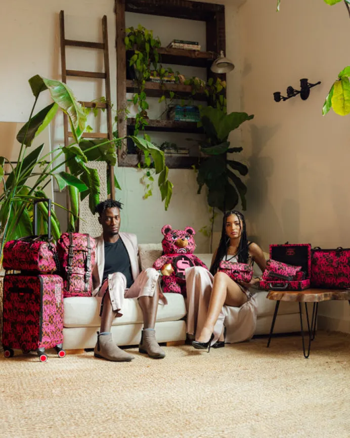 EXTERIOR:100 % Polyvinyl Chloride Shell – AKA 100%Faux Leather H: 19.5” x W: 14.5“x D: 7” YKK® Zipper FrameFront Exterior PocketEmbossed LogoFaux leather top & side handles 4 Dual Spinning Recessed WheelsTelescope Adjustable Handle – 2 positions INTERIOR:Multiple Pockets and Compartments for Maximum Organi