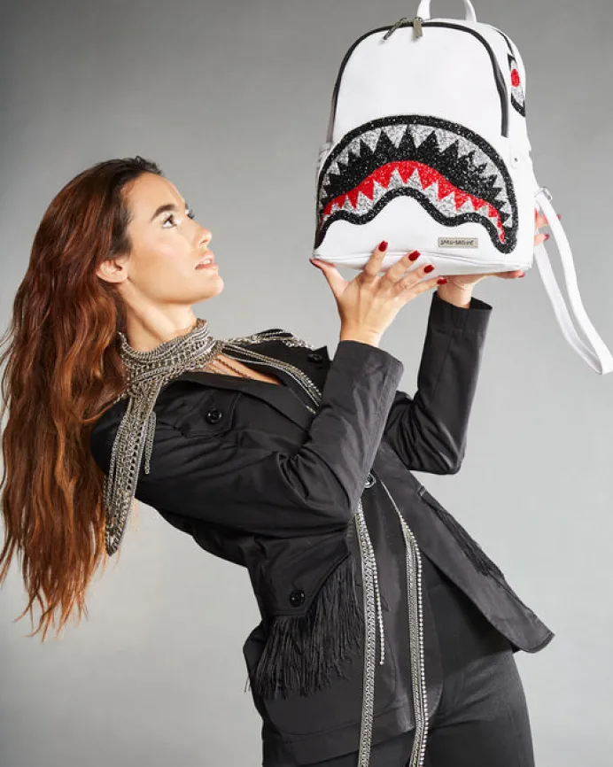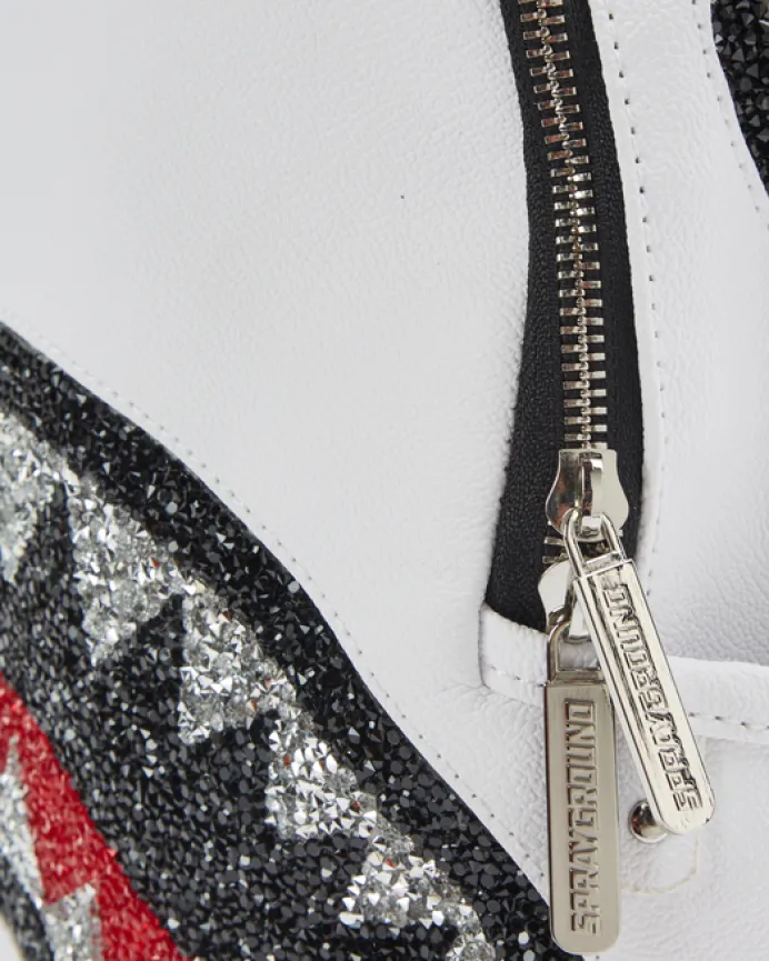 PRODUCT DETAILS Crystal Embellishment Exterior Dimensions: 10" x 5" x 11.5" • Two large main zippered compartments • Side pockets • Zippered Stash pocket • Adjustable straps for custom sizing • Gold zippers with metal hardware Interior Zippered organizer pocket • Two slip pockets • Key ring clip Fabric Durable