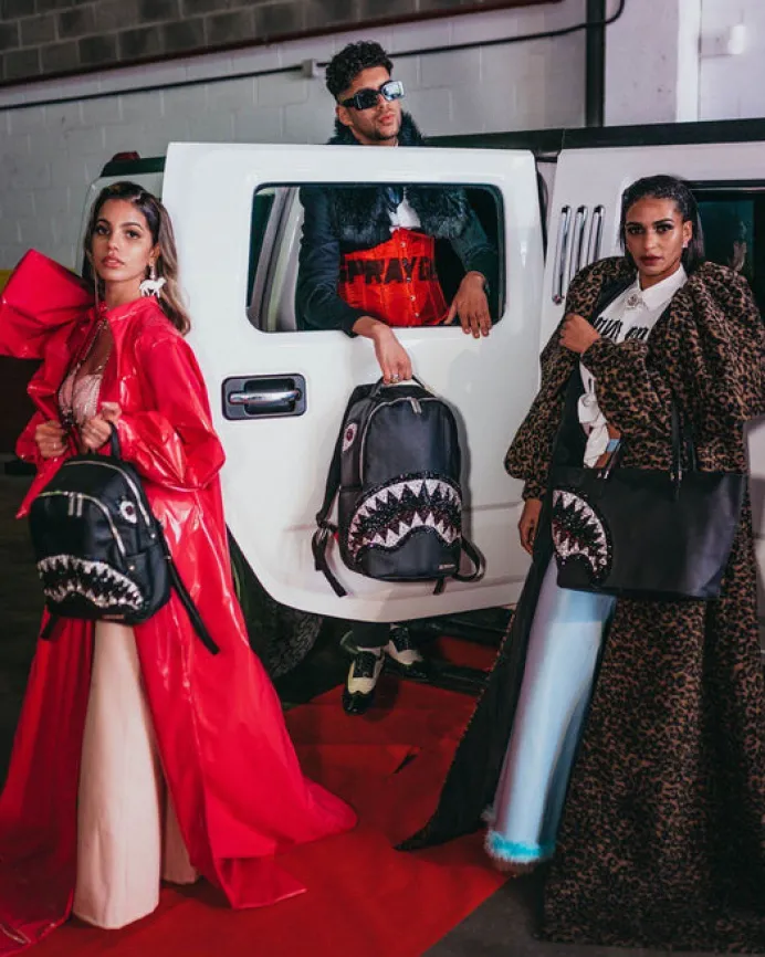 Your over the shoulder bag doesn't have to be boring anymore. Stand out with the printed Sprayground Totes. Includes Sprayground Logo Keychain Mirror. PRODUCT DETAILS Crystal Embellishment Exterior Dimensions: 19" x 6.5" x 11.5" • Top zipper opening • Top double handle • Sprayground keychain • Gold zippers with