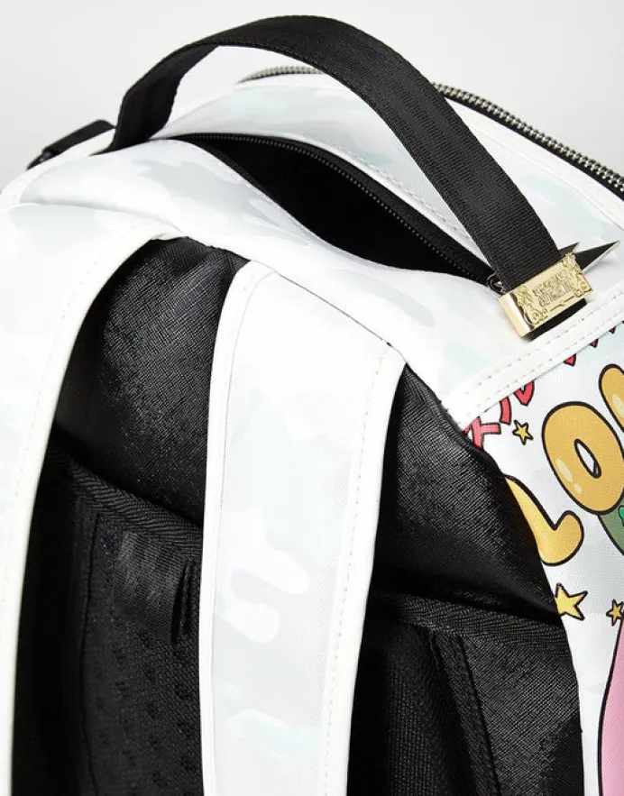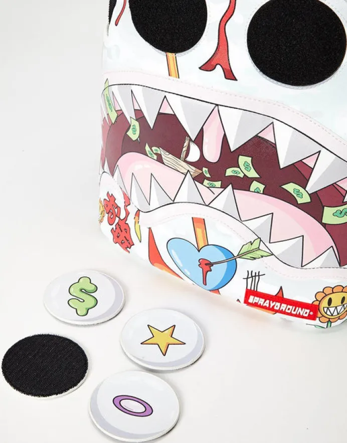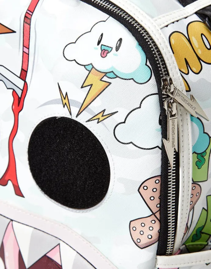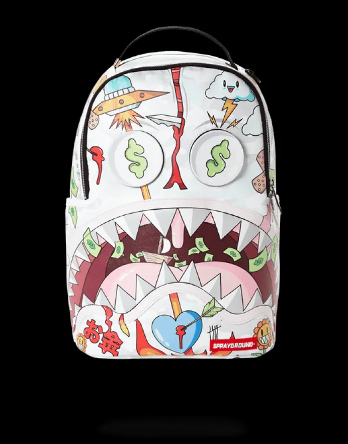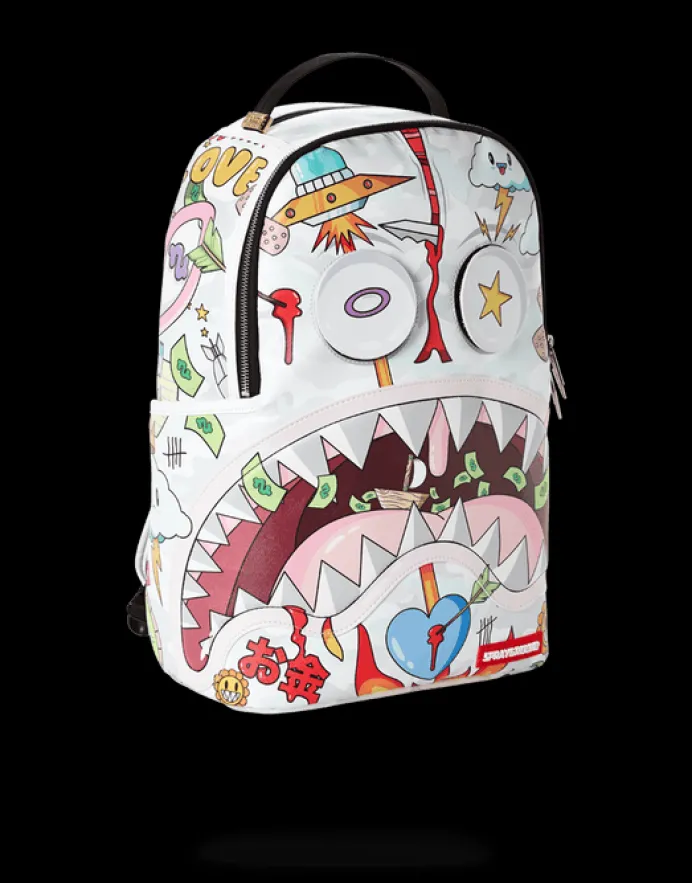 PRODUCT DETAILS Exterior Dimensions: 18" x 6" x 11.5" ∙ Front zipper pocket ∙ Side pockets ∙ Zippered Stash pocket ∙ Ergonomic mesh back padding ∙ Adjustable Straps for custom sizing ∙ Nylon Zippers with Metal Hardware ∙ Metal "Sprayground Authentic" badge ∙ Slide through back sleeve connects to Carry on luggag
