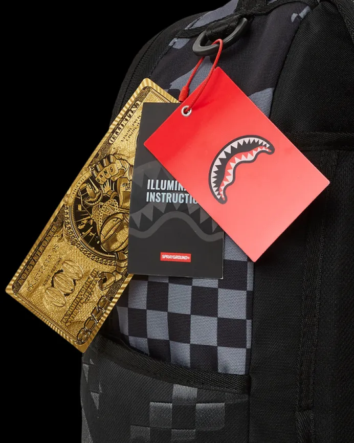 PRODUCT DETAILS The fiber optic fabric is powered upon pressing the “illuminate” button located on the inside wall of the bag. This fabric comes with 10 unique light show settings! Continue to push the button to pick your desired lighting affect. To charge your bag, remove the light controller from the “illum