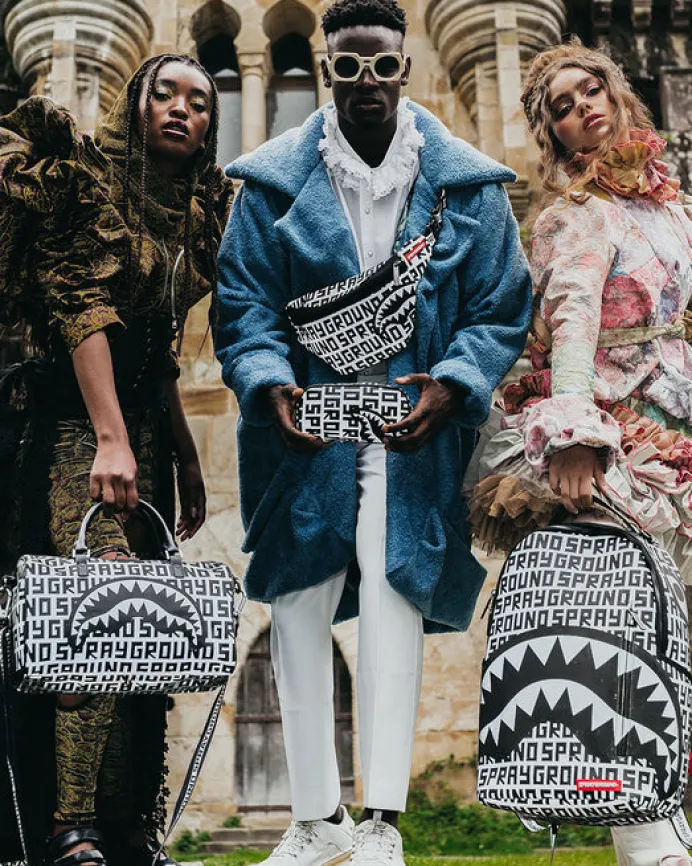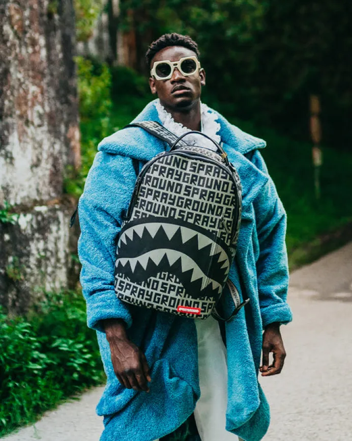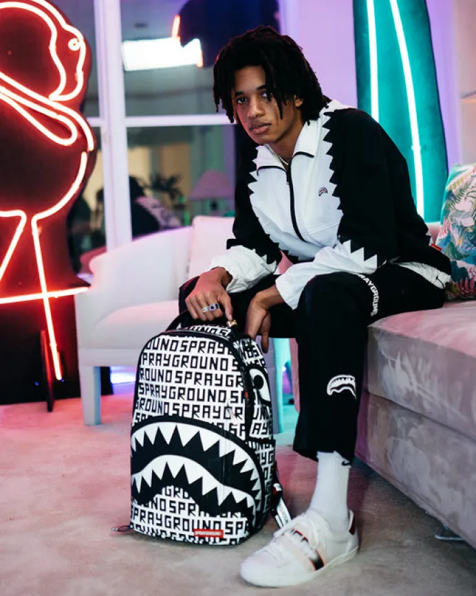 DLXV = 100%VEGAN LEATHER PRODUCT DETAILS Exterior Dimensions: 18" x 6" x 11.5" • Front zipper pocket • Side pockets • Zippered Stash pocket • Separate velour sunglass compartment • Ergonomic mesh back padding • Adjustable Straps for custom sizing • Red zippers with metal hardware • Metal "Sprayground Authentic