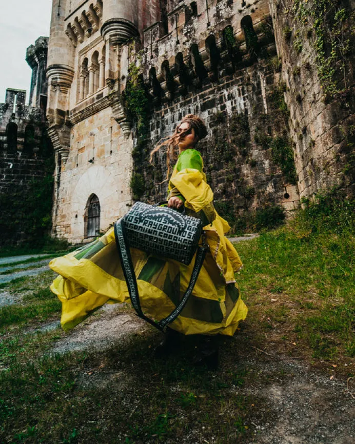 PRODUCT DETAILS Exterior Dimensions: 8" x 7.5" x 13" • Zippered top opening • Zippered pocket on back panel • Zippered side pocket • Removable adjustable strap for custom sizing with reinforced crossbody construction • Logo embossed shoulder pad for comfort • Gold zippers with metal hardware • Zippered stash po
