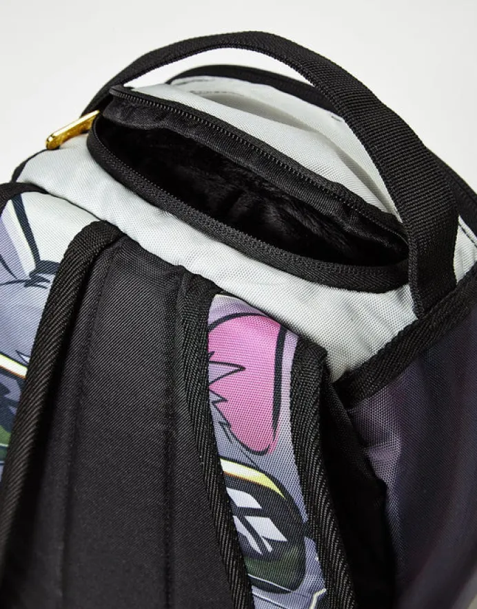 PRODUCT DETAILS Exterior Dimensions: 15" x 5" x 10" ∙ Front zipper pocket ∙ Side pockets ∙ Zippered Stash pocket ∙ Ergonomic mesh back padding ∙ Adjustable Straps for custom sizing ∙ Nylon Zippers with Metal Hardware ∙ Metal "Sprayground Authentic" badge ∙ Slide through back sleeve connects to Carry on luggage
