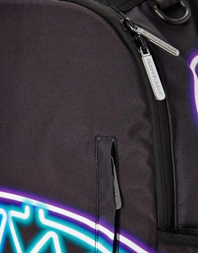 PRODUCT DETAILS Exterior Dimensions: 18" x 6" x 11.5" ∙ Front zipper pocket ∙ Side pockets ∙ Zippered Stash pocket ∙ Ergonomic mesh back padding ∙ Adjustable Straps for custom sizing ∙ Nylon Zippers with Metal Hardware ∙ Metal "Sprayground Authentic" badge ∙ Slide through back sleeve connects to Carry on luggag