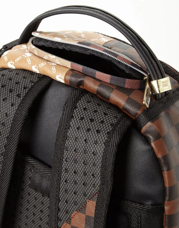PRODUCT DETAILS Exterior Dimensions: 18" x 6" x 11.5" ∙ Front zipper pocket ∙ Side pockets ∙ Zippered Stash pocket ∙ Ergonomic mesh back padding ∙ Adjustable Straps for custom sizing ∙ Nylon Zippers with Metal Hardware ∙ Metal "Sprayground Authentic" badge ∙ Slide through back sleeve connects to Carry on luggag