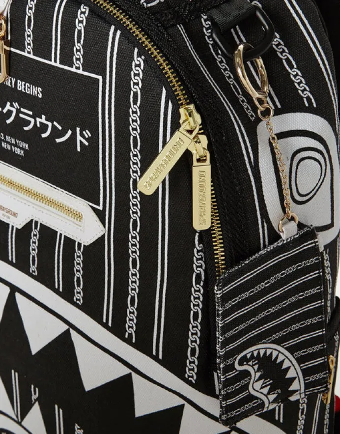 PRODUCT DETAILS Exterior Dimensions: 18" x 6" x 11.5" ∙ Front zipper pocket ∙ Side pockets ∙ Zippered Stash pocket ∙ Ergonomic mesh back padding ∙ Adjustable Straps for custom sizing ∙ Nylon Zippers with Metal Hardware ∙ Metal "Sprayground Authentic" badge ∙ Slide through back sleeve connects to Carry on luggag