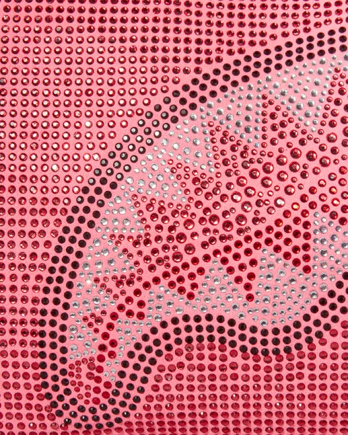 PRODUCT DETAILS CRYSTAL EMBELLISHMENT Exterior Dimensions: 8" x 7.5" x 13" • Zippered top opening • Zippered pocket on back panel • Zippered side pocket • Removable adjustable strap for custom sizing with reinforced crossbody construction • Logo embossed shoulder pad for comfort • Gold zippers with metal hardwa