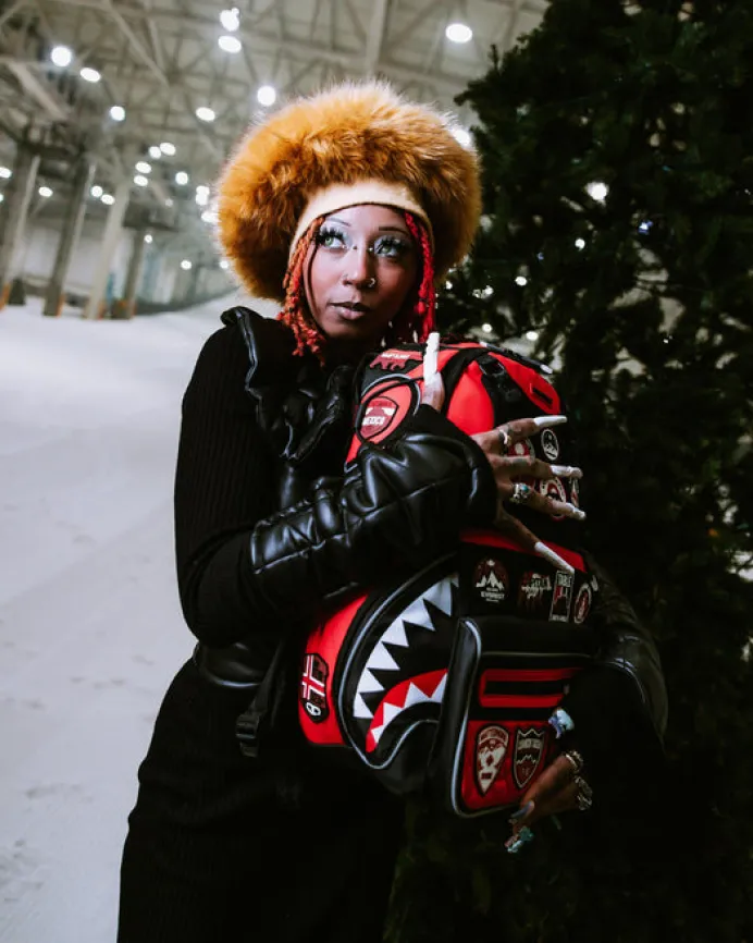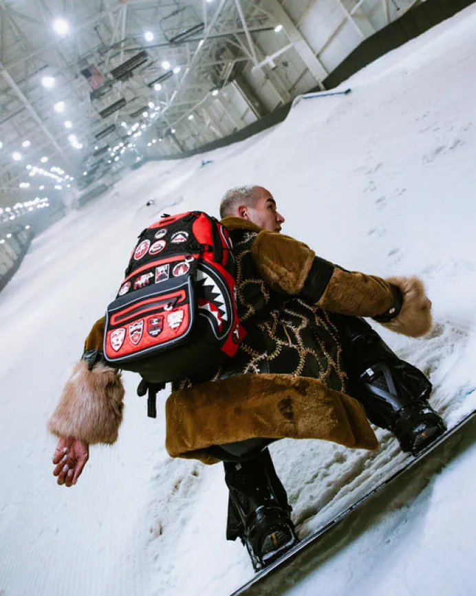 PRODUCT DETAILS We celebrate nature w/ The Global Expedition Collection Featuring 22 patches of the most world renowned mountains to summit on this beautiful planet! The front panel is detachable with clips to show full zip front shark pocket with 3M glow printing. Exterior Dimensions: 18" x 6" x 11.5" • Front