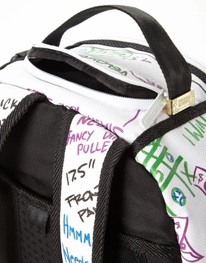 PRODUCT DETAILS Exterior Dimensions: 18" x 6" x 11.5" ∙ 2 Front zippered pockets ∙ Side pockets ∙ Zippered Stash pocket ∙ Ergonomic mesh back padding ∙ Adjustable Straps for custom sizing ∙ Nylon Zippers with Metal Hardware ∙ Metal "Sprayground Authentic" badge ∙ Slide through back sleeve connects to Carry on l