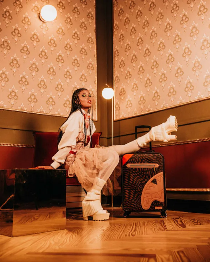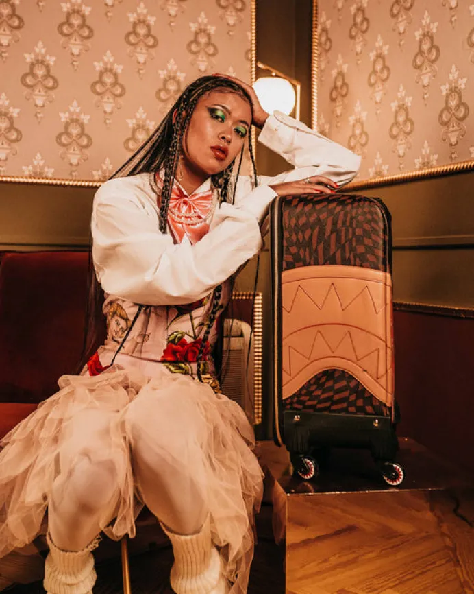 EXTERIOR:100 % Polyvinyl Chloride Shell – AKA 100% Vegan Leather H: 19.5” x W: 14.5“x D: 7” YKK® Zipper FrameFront Exterior PocketEmbossed LogoFaux leather top & side handles 4 Dual Spinning Recessed WheelsTelescope Adjustable Handle – 2 positions INTERIOR:Multiple Pockets and Compartments for Maximum Organ