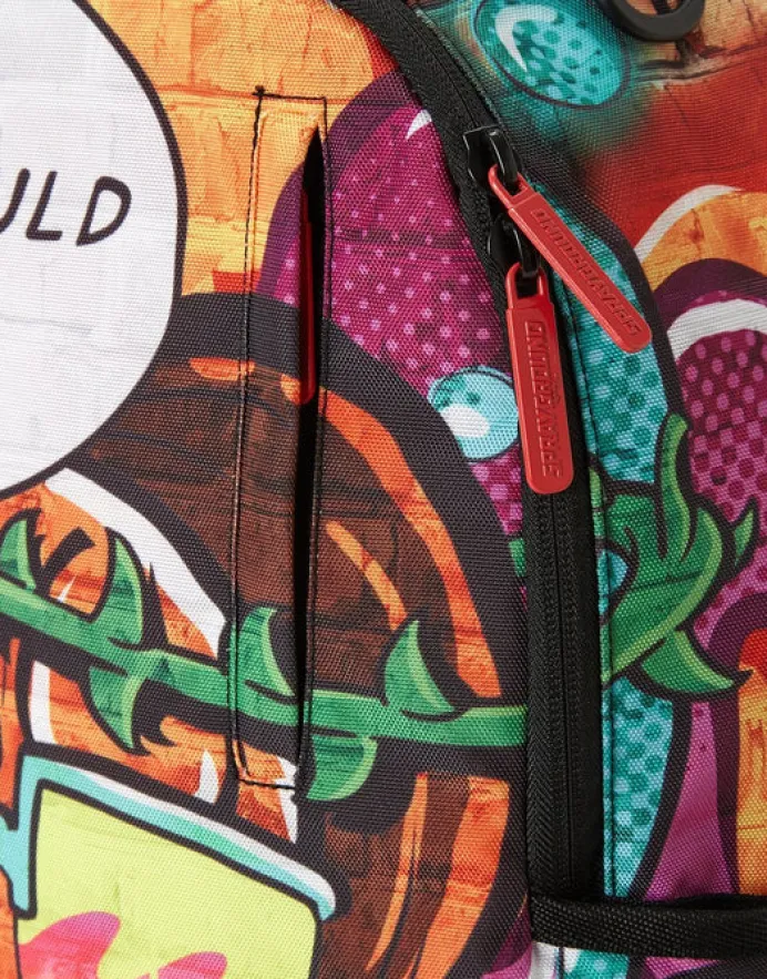 PRODUCT DETAILS Exterior Dimensions: 18" x 6" x 11.5" ∙ Front zipper pocket ∙ Side pockets ∙ Zippered Stash pocket ∙ Ergonomic mesh back padding ∙ Adjustable Straps for custom sizing ∙ Nylon Zippers with Metal Hardware ∙ Metal "Sprayground Authentic" badge ∙ Slide through back sleeve connects to Carry on luggag