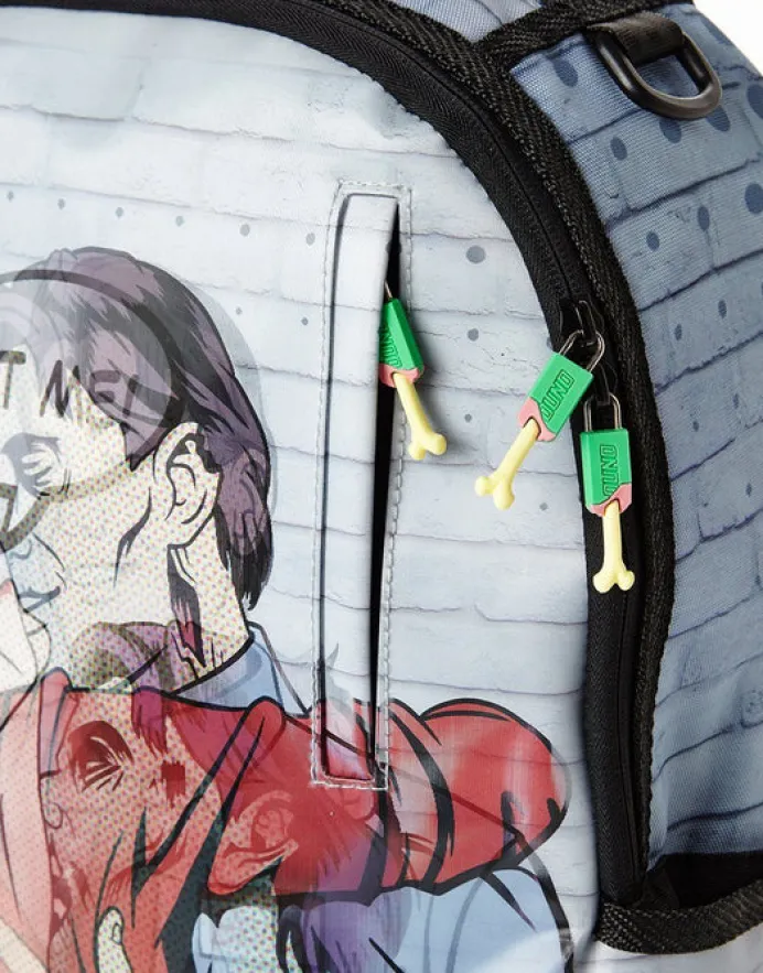 PRODUCT DETAILS ExteriorDimensions: 18" x 6" x 11.5" _ Front zipper pocket_ Side pockets _ Zippered Stash pocket _ Ergonomic mesh back padding _ Adjustable Straps for custom sizing _ Nylon Zippers with Metal Hardware _ Metal "Sprayground Authentic" badge _ Slide through back sleeve connects to Carry on luggage